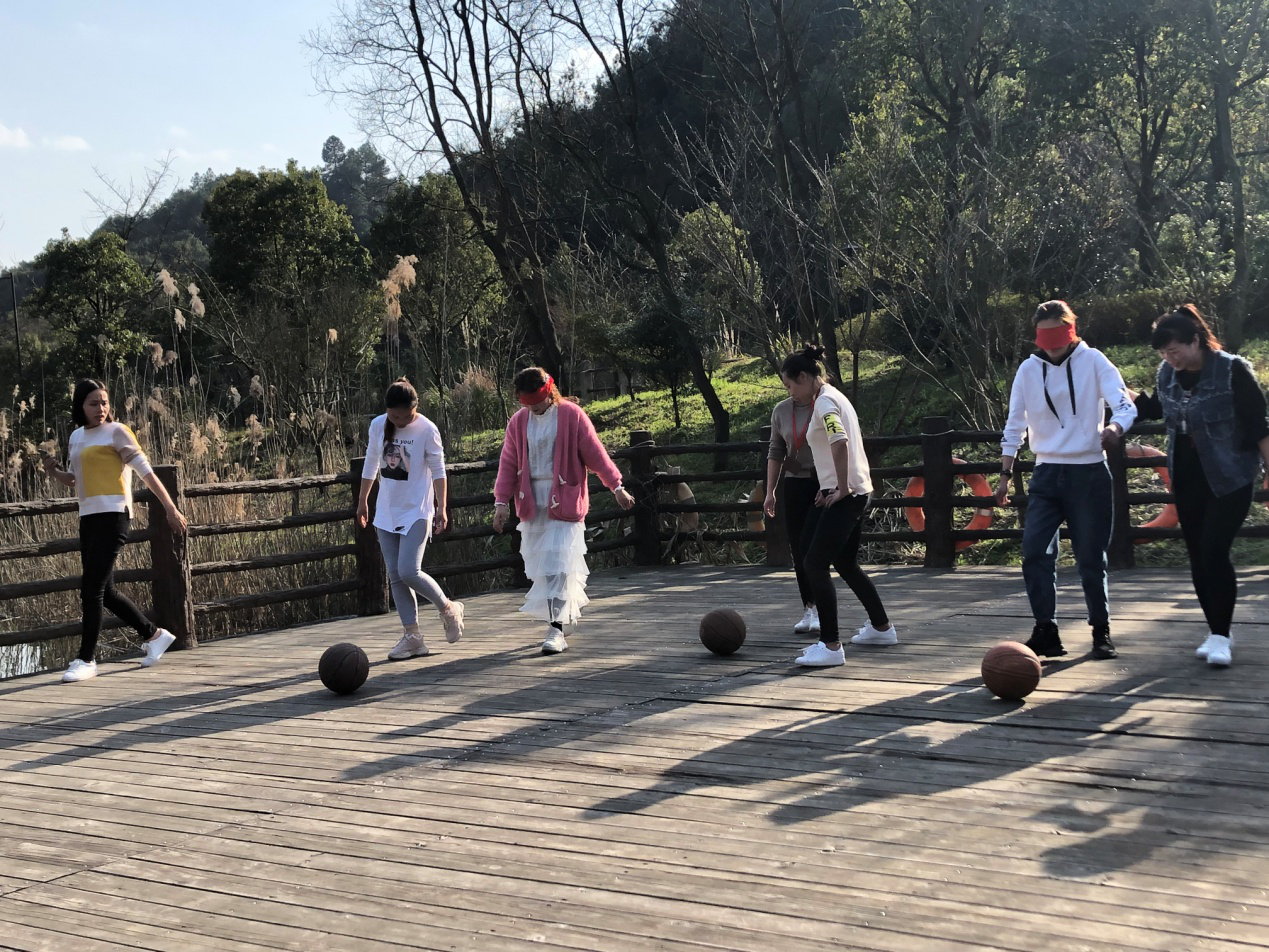 回到游覽的起點(diǎn),進(jìn)入互動(dòng)游戲環(huán)節(jié),大家踴躍參與,熱情高漲。在盲人踢球的環(huán)節(jié)中,兩兩合作,一人只能用言語指導(dǎo)被蒙住雙眼的同伴踢球進(jìn)門,十分考驗(yàn)兩人的默契與協(xié)作能力。場上選手們狀況百出,有的用力過猛踢遠(yuǎn)了球,分不清方位一頭霧水,有的和其他小組撞在了一起,惹得觀眾們笑聲連連,好不熱鬧。