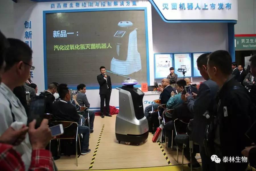 4月19日,第53屆中國國際制藥機械博覽會在青島國際博覽中心盛大開幕。泰林生物在制劑二館W2-59展臺隆重舉行了滅菌機器人上市發(fā)布會。上午10:18發(fā)布會正式開始,由浙江泰林生物技術股份有限公司副總經理夏信群先生致開幕詞,歡迎行業(yè)內新老客戶蒞臨泰林展臺,參加過氧化氫滅菌機器人上市發(fā)布會,并邀請客戶進行了揭幕儀式。