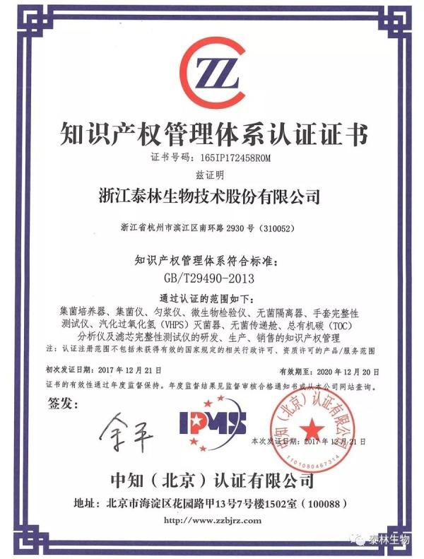 去年6月,泰林生物召開知識產(chǎn)權貫標啟動大會,經(jīng)過近半年的知識產(chǎn)權管理體系建設運行,2017年12月21日,泰林生物通過知識產(chǎn)權管理體系評審,正式獲得知識產(chǎn)權管理體系認證證書。