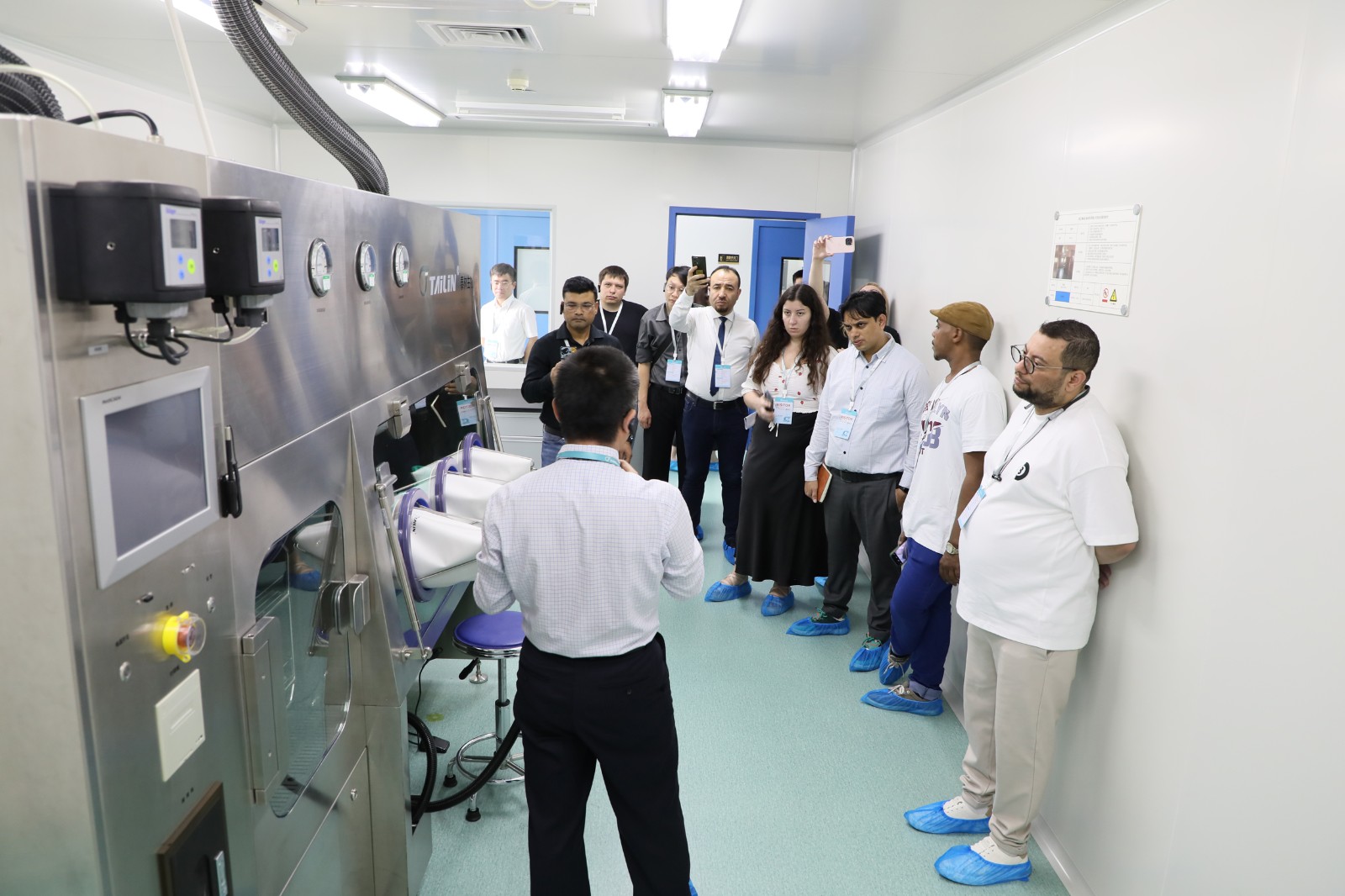 創(chuàng)新與高效的交響,離不開匠心的堅(jiān)守。在工廠參觀環(huán)節(jié),海外客戶實(shí)地深入了解無菌隔離技術(shù)、細(xì)胞與基因制備生產(chǎn)、智能微生物檢測(cè)、核藥藥品無菌制備、無菌檢測(cè)、微生物檢測(cè)、膜過濾等領(lǐng)域重點(diǎn)產(chǎn)品生產(chǎn)制造的各個(gè)環(huán)節(jié)。在這里,領(lǐng)先的自動(dòng)化產(chǎn)線、先進(jìn)的加工設(shè)備、綠色高效的制造體系不斷映入眼底,全方面、多維度展示著泰林生物對(duì)產(chǎn)品全生命周期的嚴(yán)格把控。海外客戶對(duì)泰林生物規(guī)?;闹圃鞂?shí)力贊不絕口,更堅(jiān)定了對(duì)泰林生物旗下產(chǎn)品的信心,期待后續(xù)對(duì)接更多項(xiàng)目的合作。