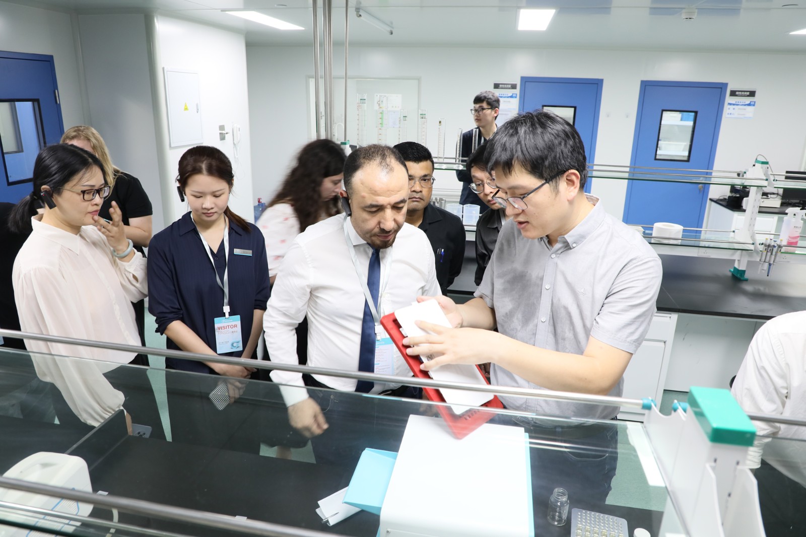 海外客戶在泰林生物相關(guān)負(fù)責(zé)人以及專業(yè)技術(shù)人員的陪同下, 先后參觀了泰林醫(yī)學(xué)工程園區(qū)和泰林生命科學(xué)園區(qū)。在制藥設(shè)備生產(chǎn)區(qū)、細(xì)胞制備區(qū),海外客戶看到了泰林生物在制藥裝備加工制造技術(shù)上的強(qiáng)大交付能力;在實(shí)驗(yàn)中心、膜技術(shù)生產(chǎn)車間、微檢耗材生產(chǎn)區(qū)、醫(yī)學(xué)工程創(chuàng)新產(chǎn)品展示區(qū)、生命科學(xué)展廳產(chǎn)品區(qū)等地,海外客戶看到了泰林生物豐富的產(chǎn)品系列和解決方案以及背后雄厚的研發(fā)實(shí)力。