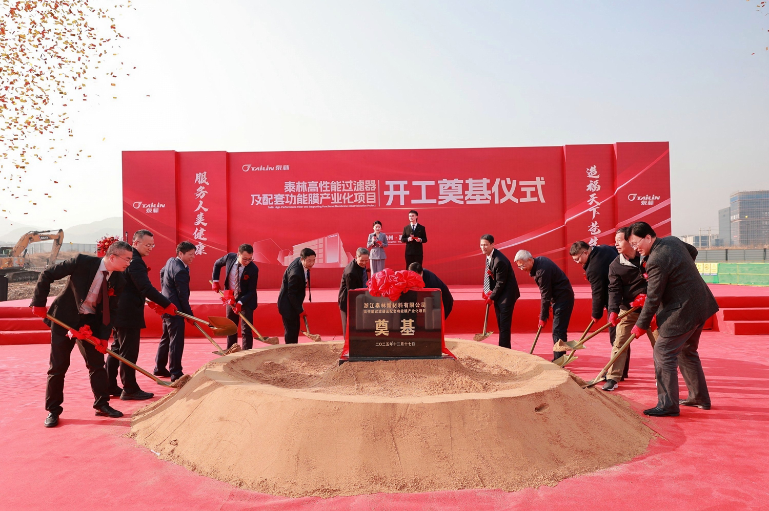 2025年12月17日上午,浙江泰林新材料有限公司高性能過濾器及配套功能膜產(chǎn)業(yè)化項(xiàng)目開工奠基儀式隆重舉行。中共杭州市富陽區(qū)委常委、杭州富春灣新城管委會(huì)主任孫偉,杭州市富陽區(qū)靈橋鎮(zhèn)黨委書記章繪,浙江省新材料產(chǎn)業(yè)協(xié)會(huì)理事長、浙江大學(xué)教授、浙江省特級(jí)專家楊輝,泰林生物董事長、總裁葉大林,泰林生物副總裁、泰林新材料總經(jīng)理沈志林,泰林生物副總裁、泰林醫(yī)學(xué)工程總經(jīng)理夏信群,泰林生物獨(dú)立董事董明、倪崖、厲國威,項(xiàng)目設(shè)計(jì)單位、總包單位、監(jiān)理單位代表,泰林生物及旗下子公司管理團(tuán)隊(duì)均蒞臨現(xiàn)場,共同見證了這一重要時(shí)刻!