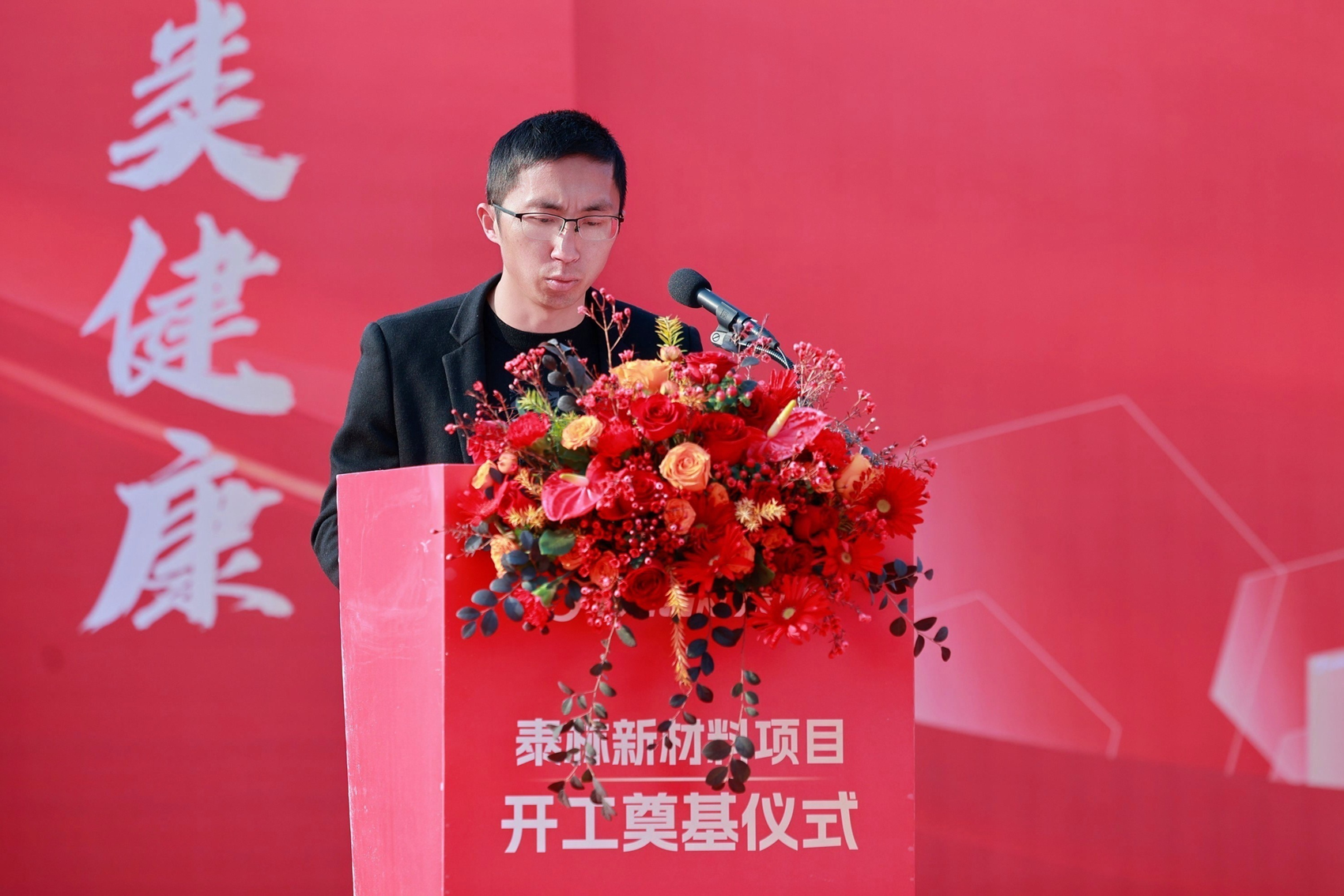 泰林生物副總裁、泰林新材料總經(jīng)理沈志林在開工奠基儀式上致辭
