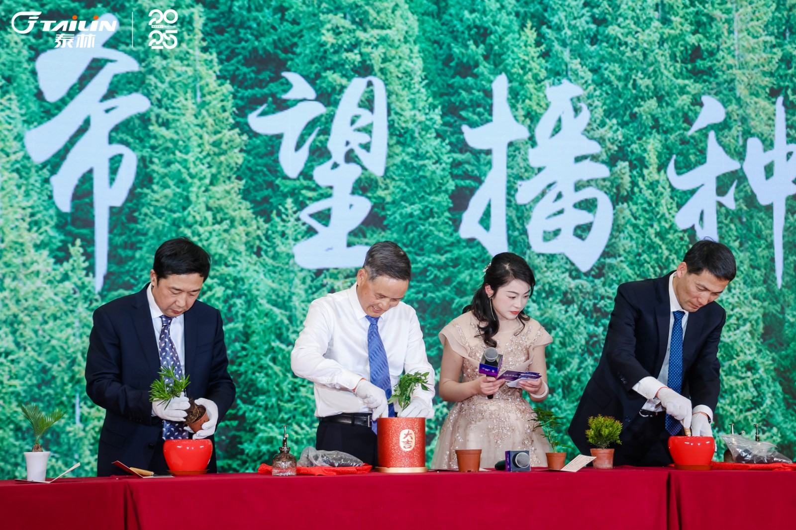 在大會(huì)的尾聲,舞臺(tái)上迎來(lái)了一幕溫暖的場(chǎng)景。領(lǐng)導(dǎo)團(tuán)隊(duì)攜手上臺(tái),將精心挑選的樹苗,親手植入盆栽之中,泥土的芬芳與新芽的生機(jī)交織,一場(chǎng)關(guān)于希望的播種儀式就此開啟。讓我們攜手共進(jìn),在新的一年里,扎根于公司的沃土,汲取養(yǎng)分,茁壯成長(zhǎng),共同書寫更加輝煌燦爛的明天!